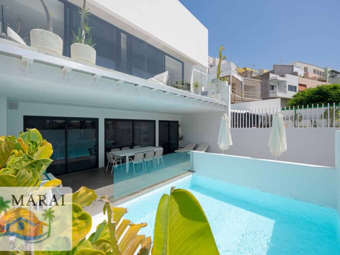 Fantastic designer property on two floors, swimming pool, terraces and parking area in a privileged area of Tazacorte on the…