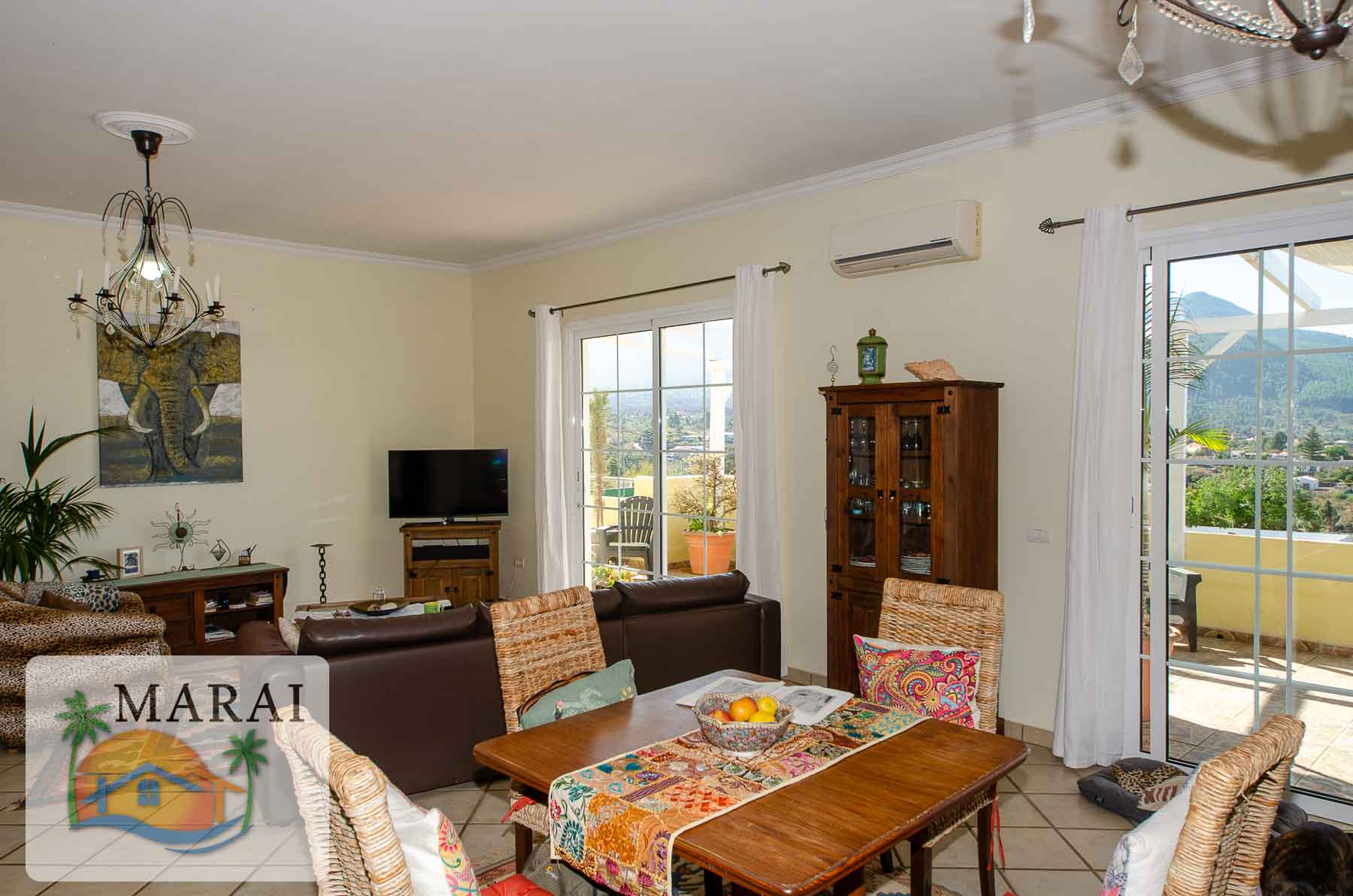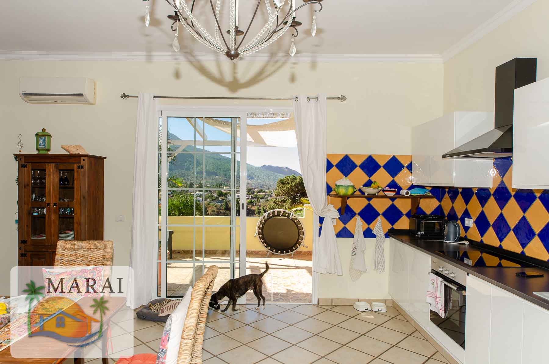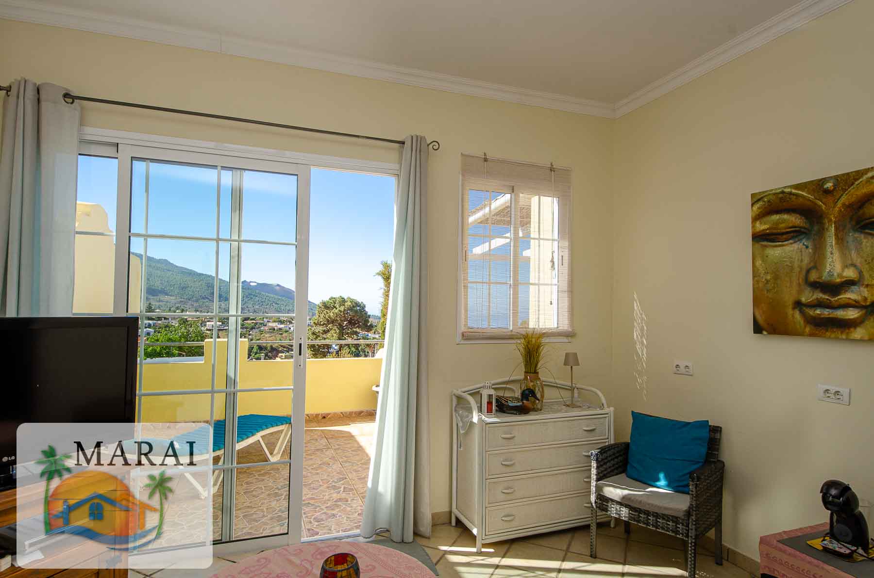 Diese herrliche Immobilie hat eine Wohnfläche von etwa 130 m² und eine Terrasse von ca. 40 m² mit Blick auf das Meer, die Cumbre Nueva, sowie dem Vulkan Tajogaite.