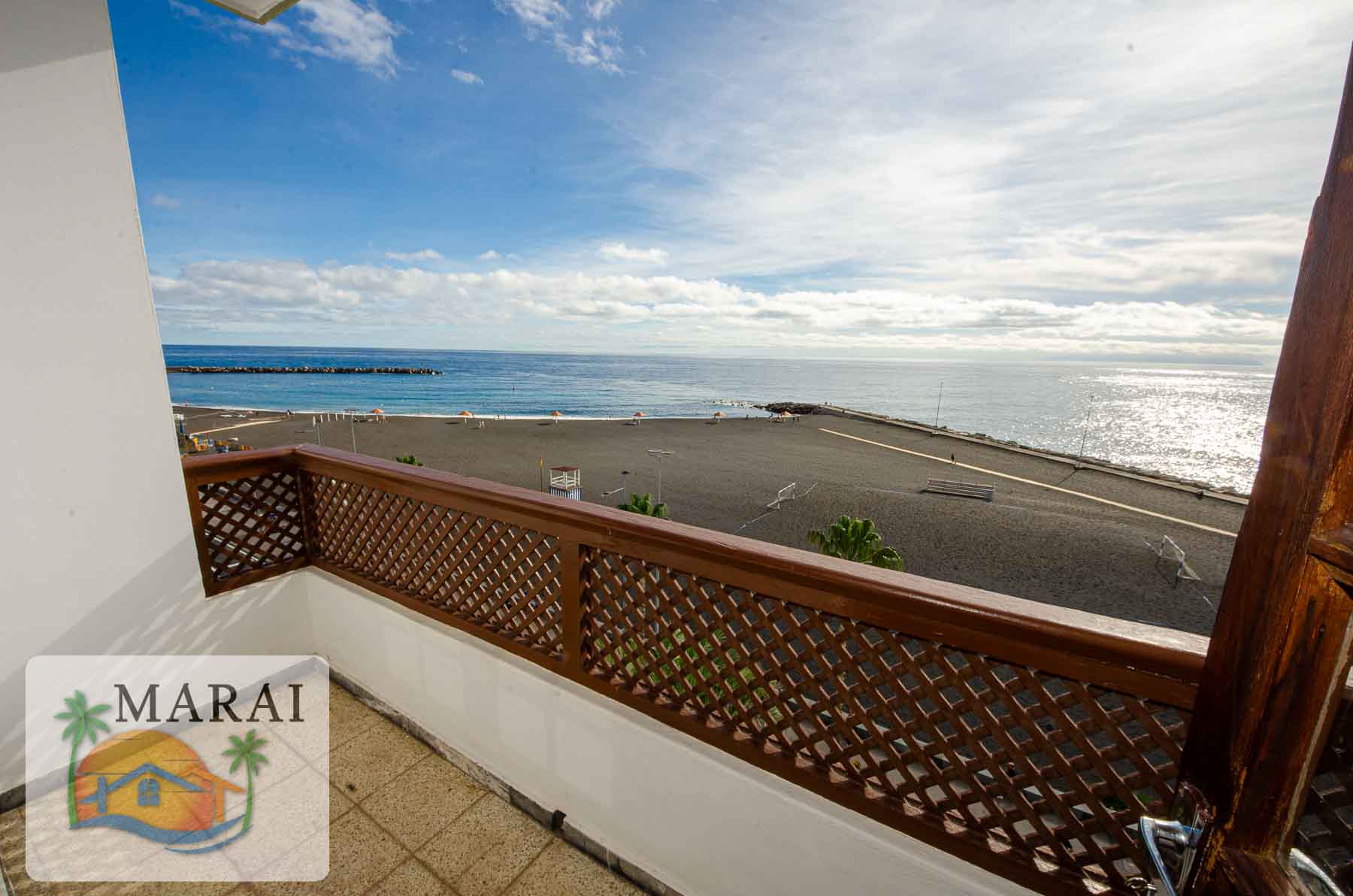 Der Balkon bietet einen herrlichen, unverbauten Blick auf den Atlantik und den Stadtstrand. Die Nutzung der gemeinschaftlichen Dachterrasse ist ebenfalls inbegriffen.