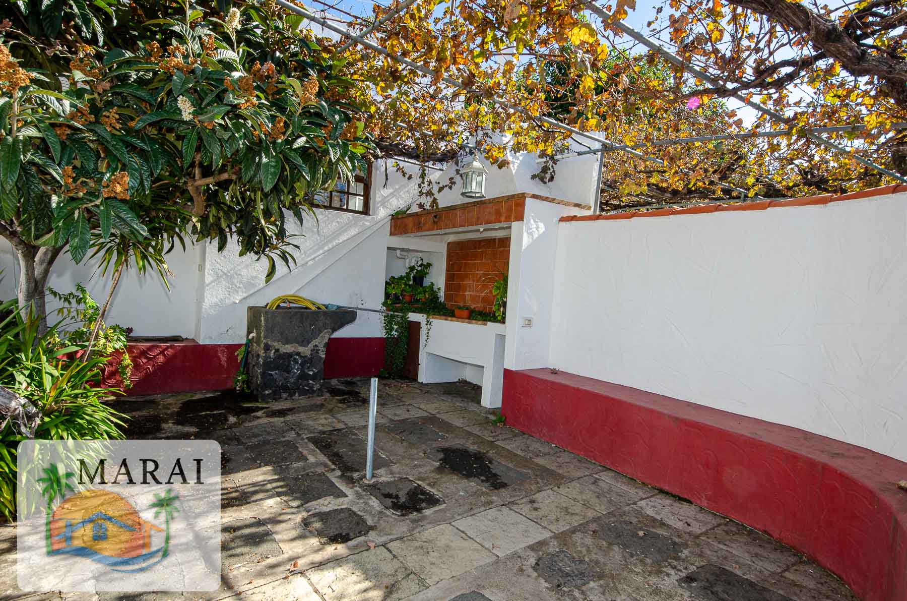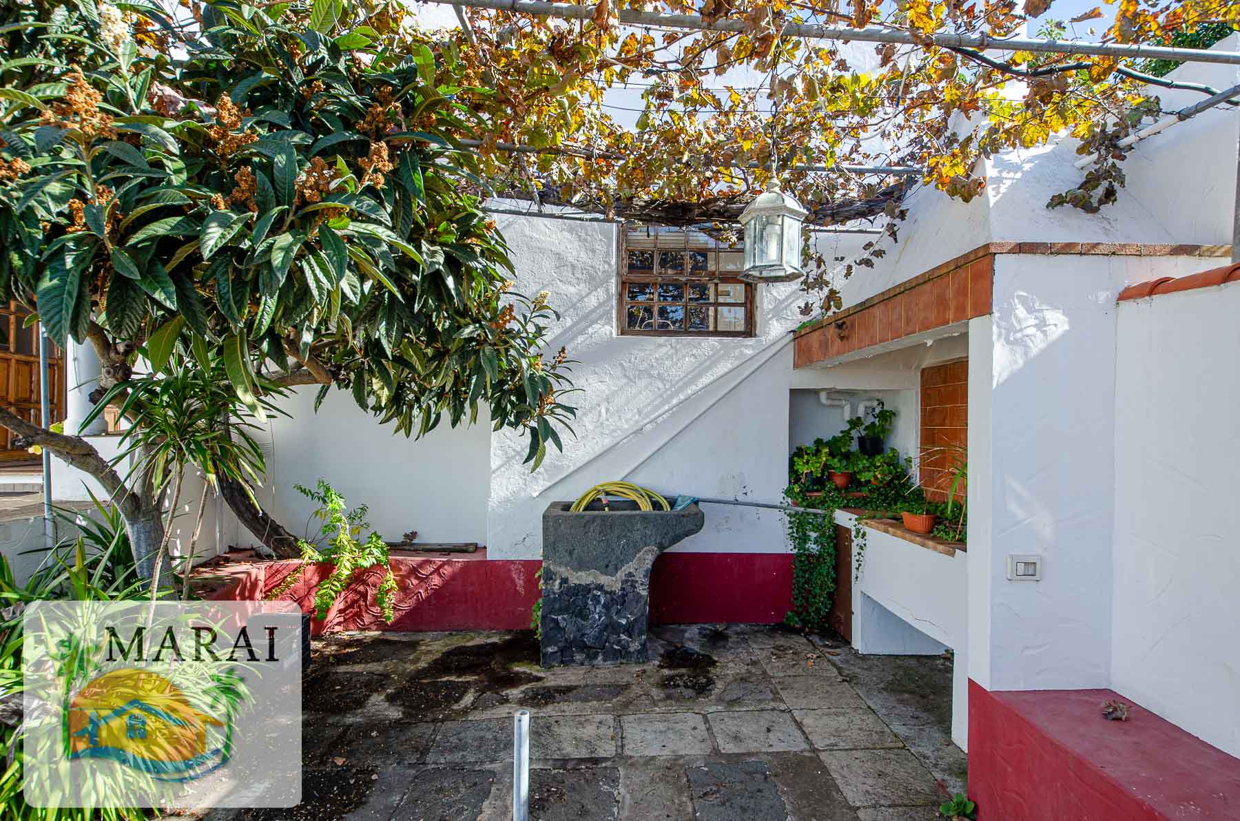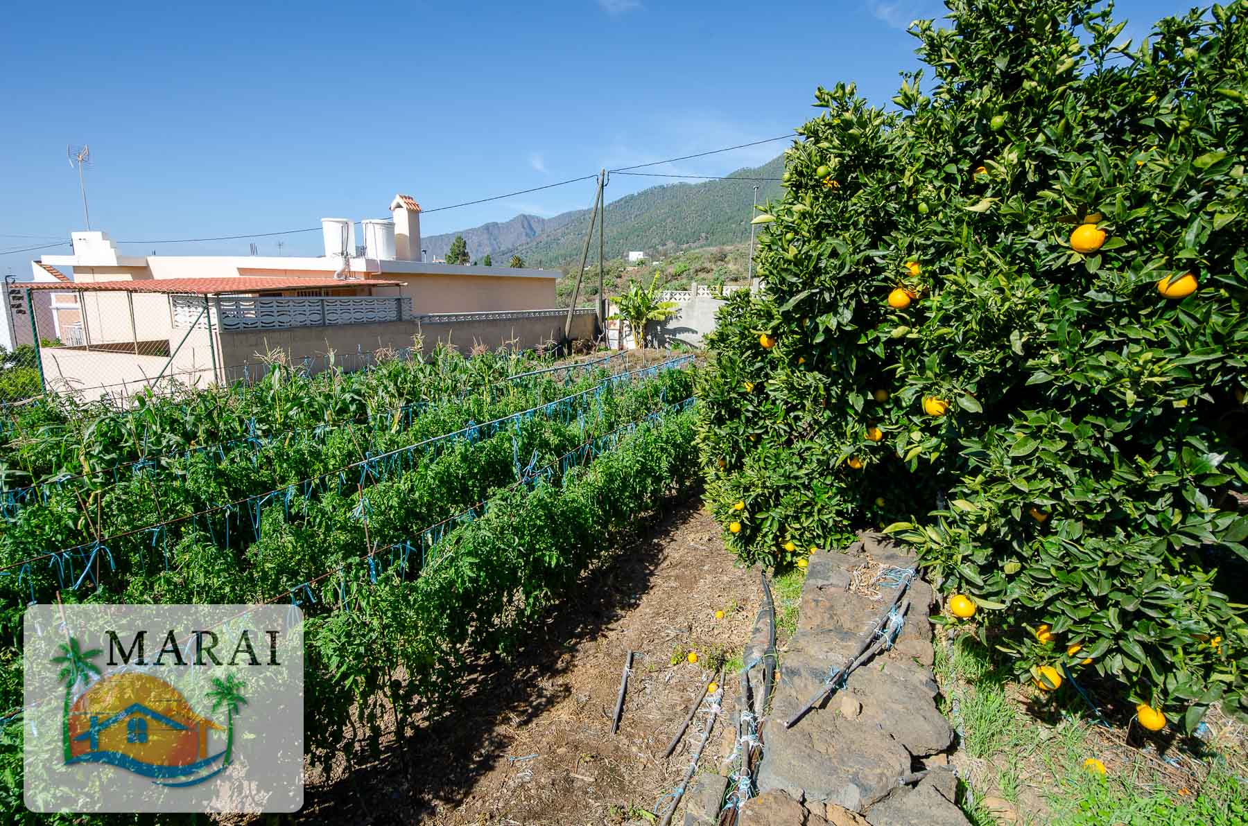 Además, la parcela de unos 1.423 m² tiene arboles frutales y zona de huerta ideal para diseñarlo a su gusto. También hay un estanque de agua. En el jardín también hay un lugar para almacenaje de herramientas y una cuadra de animales.