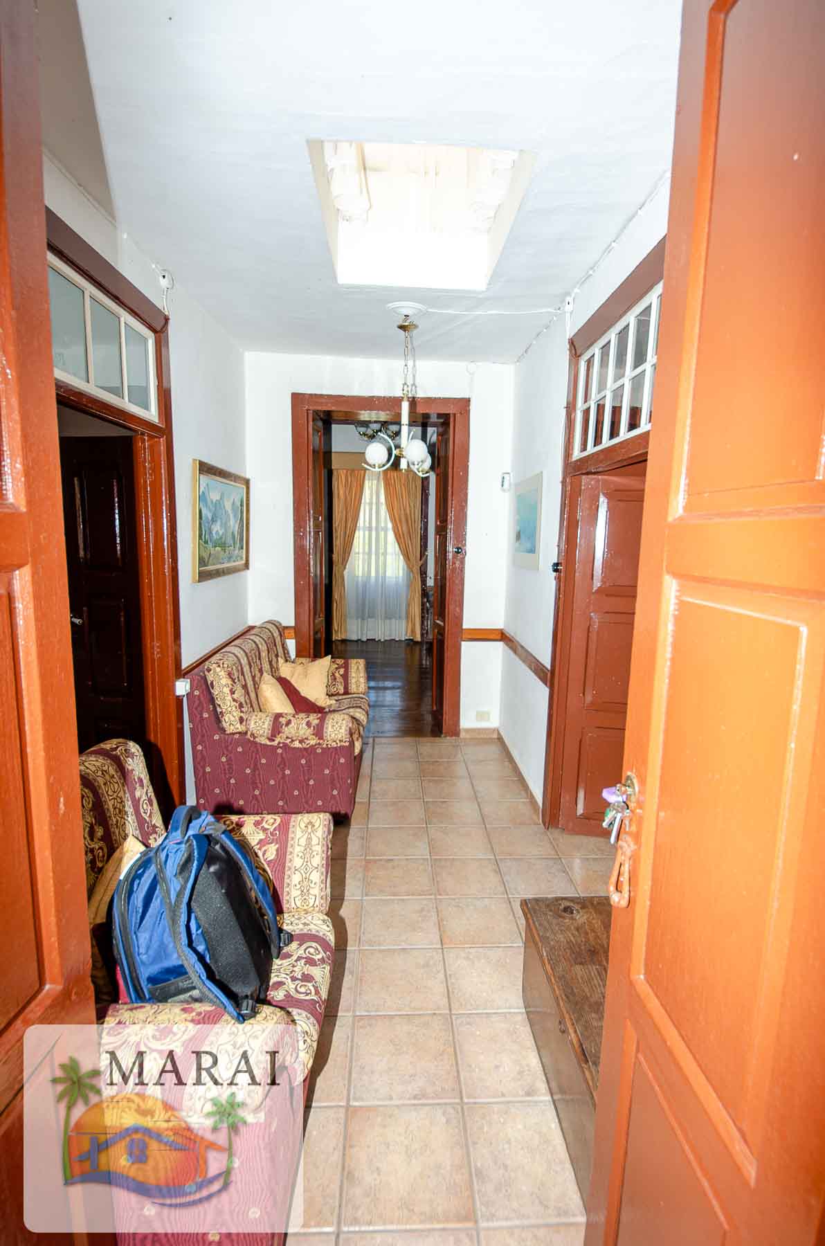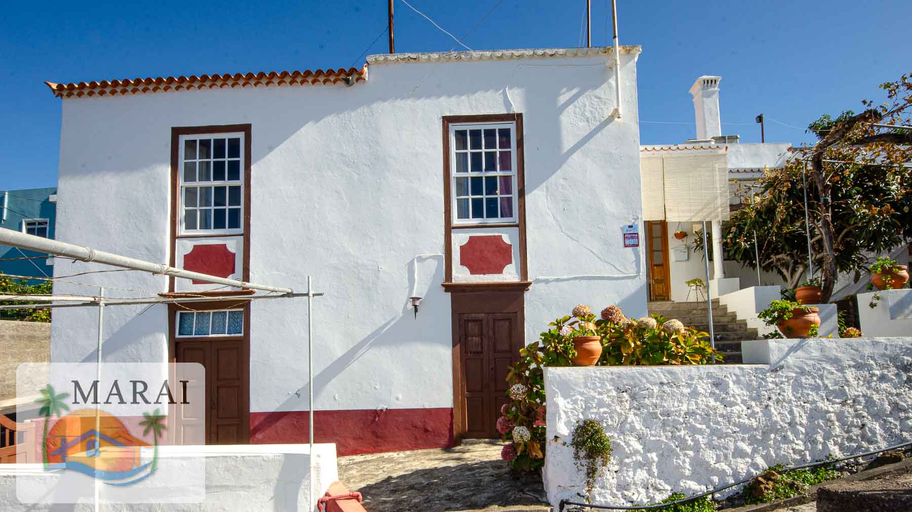 Esta bella propiedad tiene una superficie construida de unos 219 m² dividido en dos plantas con entrada independiente. En la planta alta que tiene unos 120 m² se encuentra la vivienda principal que consta de cocina independiente, comedor, salón, tres dormitorios, baño con ducha y cuarto de lavado.