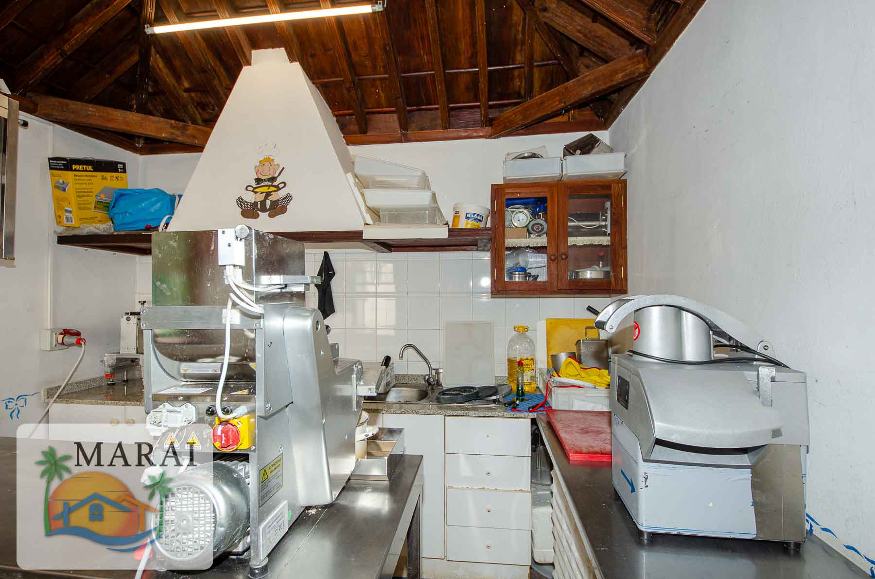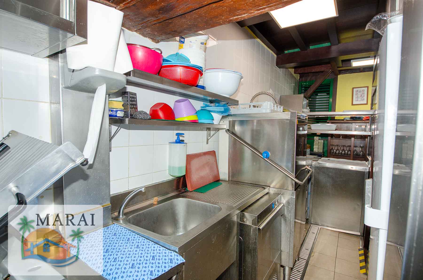 On the upper floor, there is a large meeting room with large windows typical of traditional houses and tea wood ceilings and floors. In addition, there is another small lounge, two bathrooms, a staff dressing room, an industrial refrigerator and freezer, several storage areas, and a large office with a beautiful traditional wooden balcony overlooking the seafront promenade.