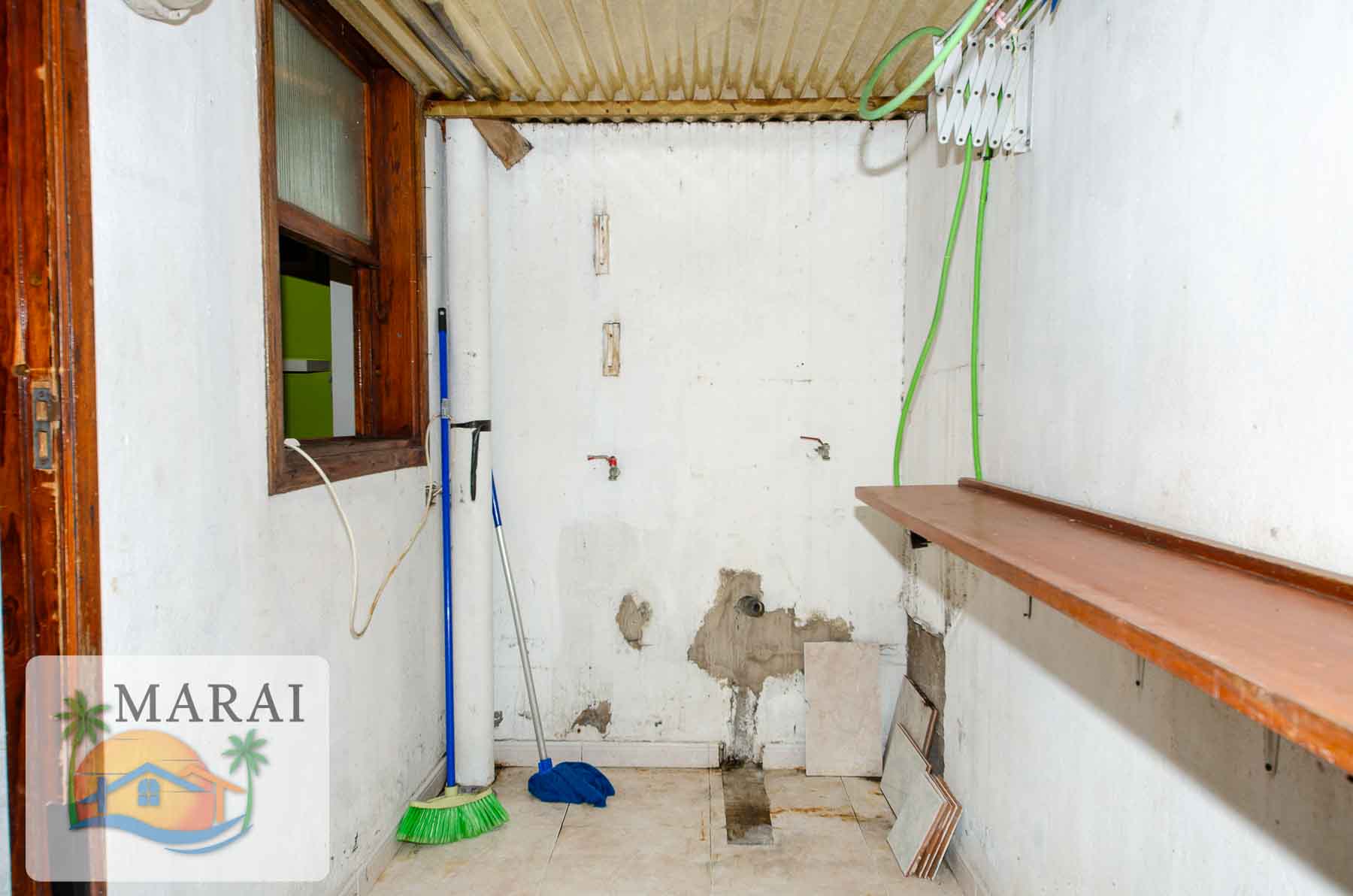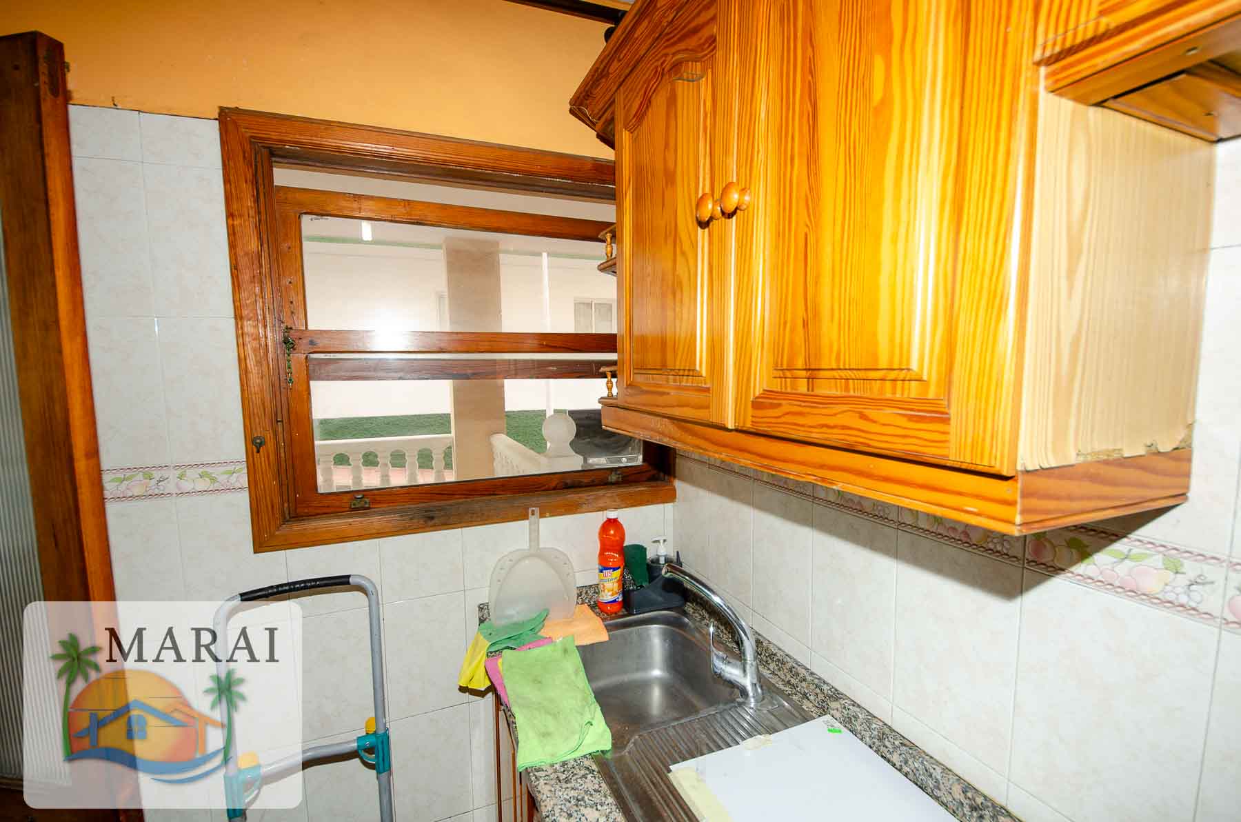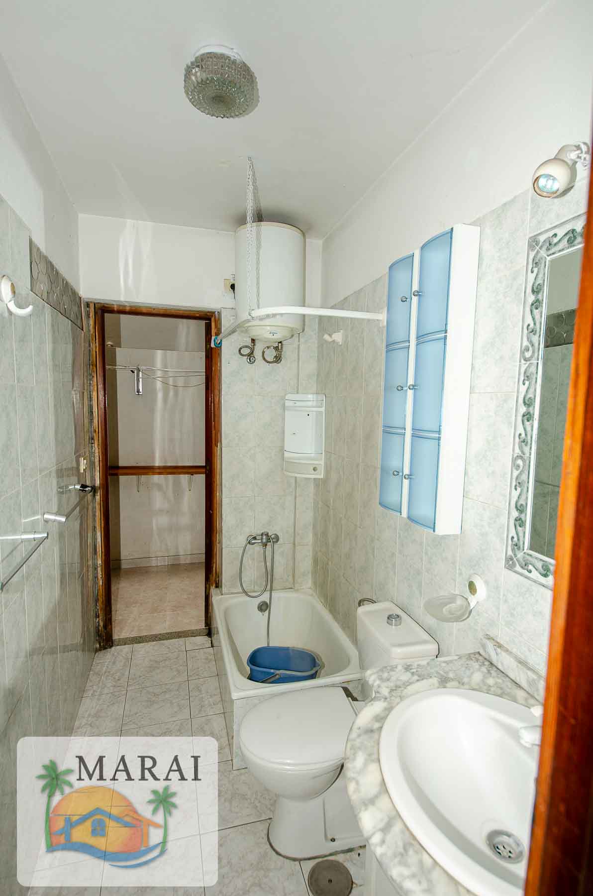 The kitchen opens onto the terrace and there is another entrance to the living room via the staircase. Both bedrooms have a window overlooking a small interior courtyard, which can also be accessed via a door from the bathroom, where there is a washing machine and a place to hang clothes.