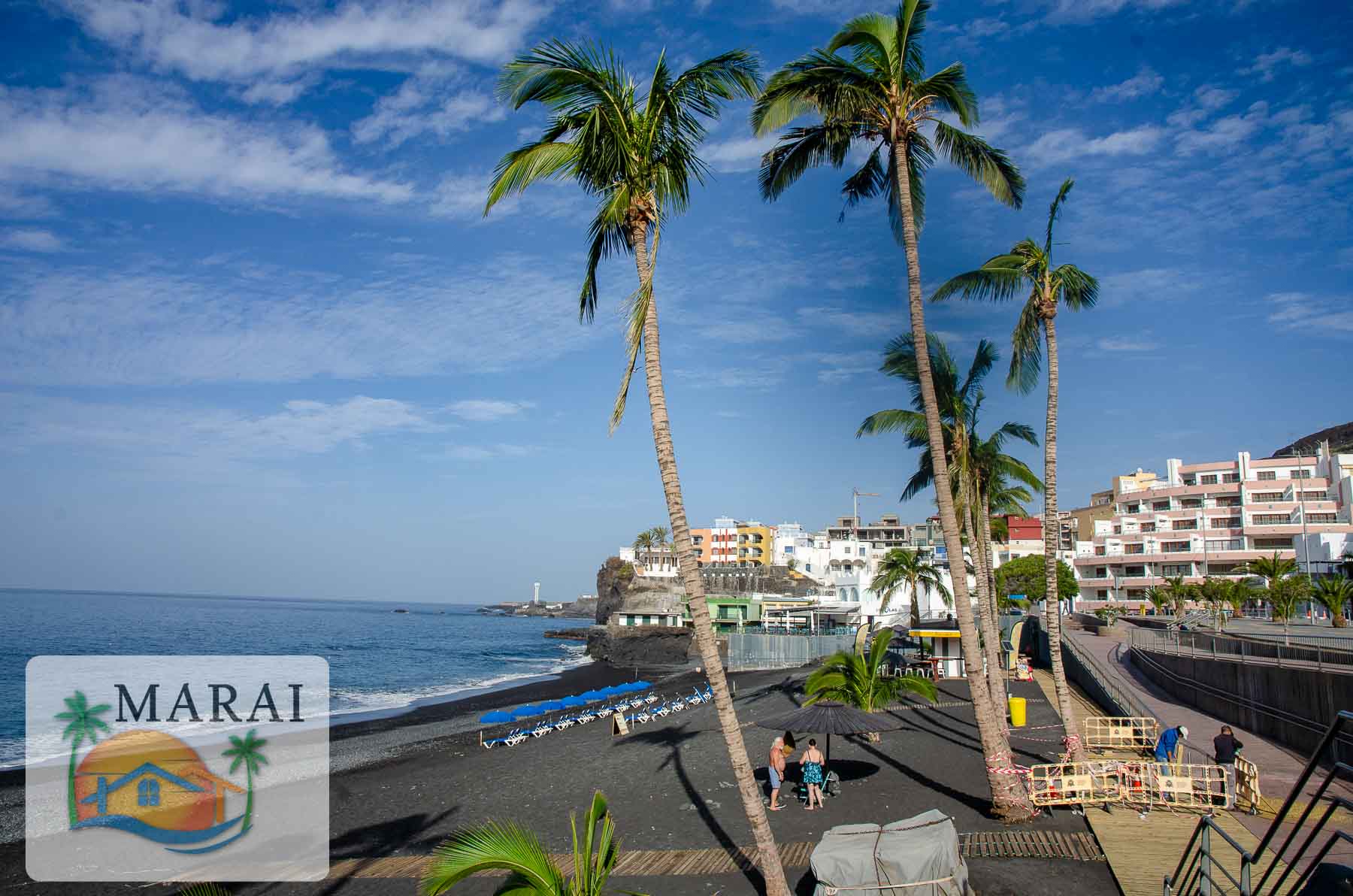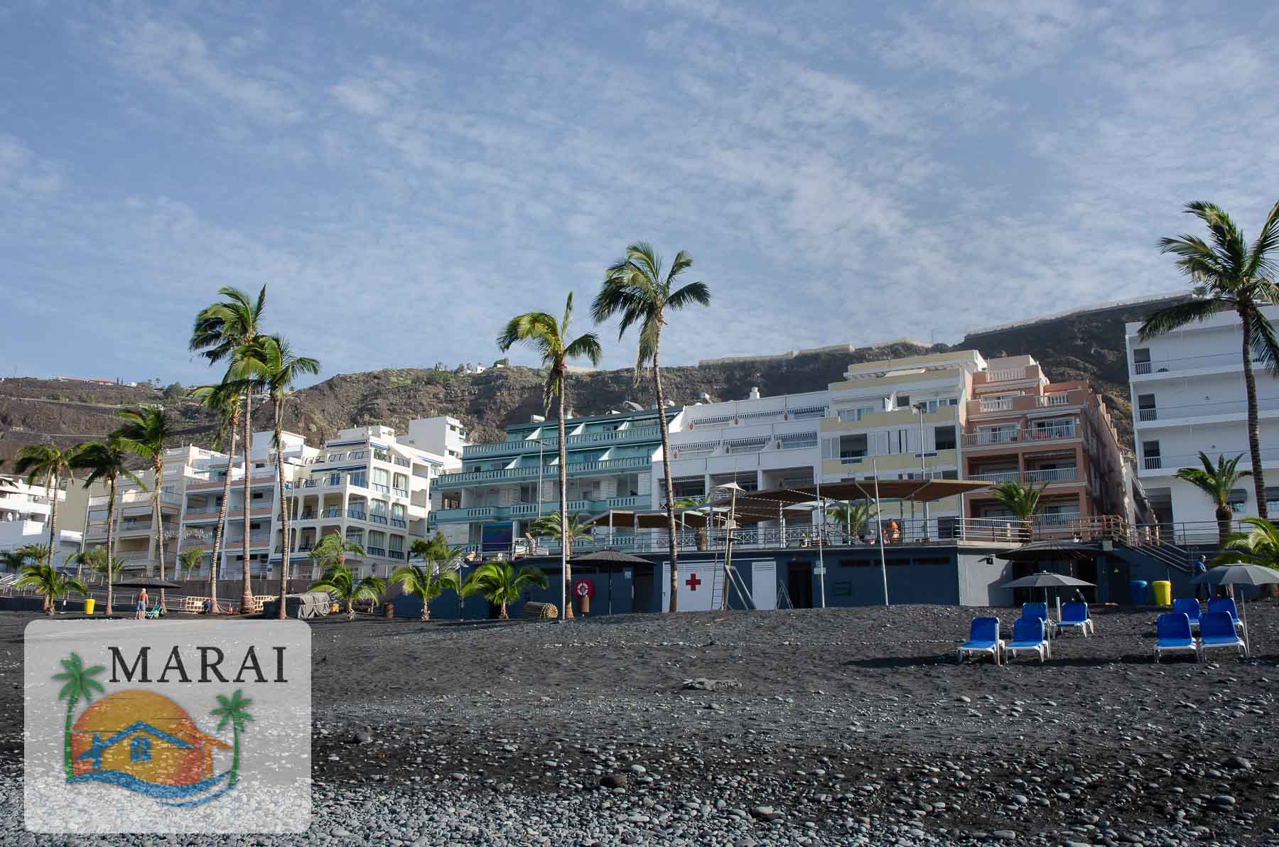 Puerto Naos, with its long sandy beach lined with palm trees, beach bars and a recently renovated, spacious promenade, is located in the centre-west of the island of La Palma.