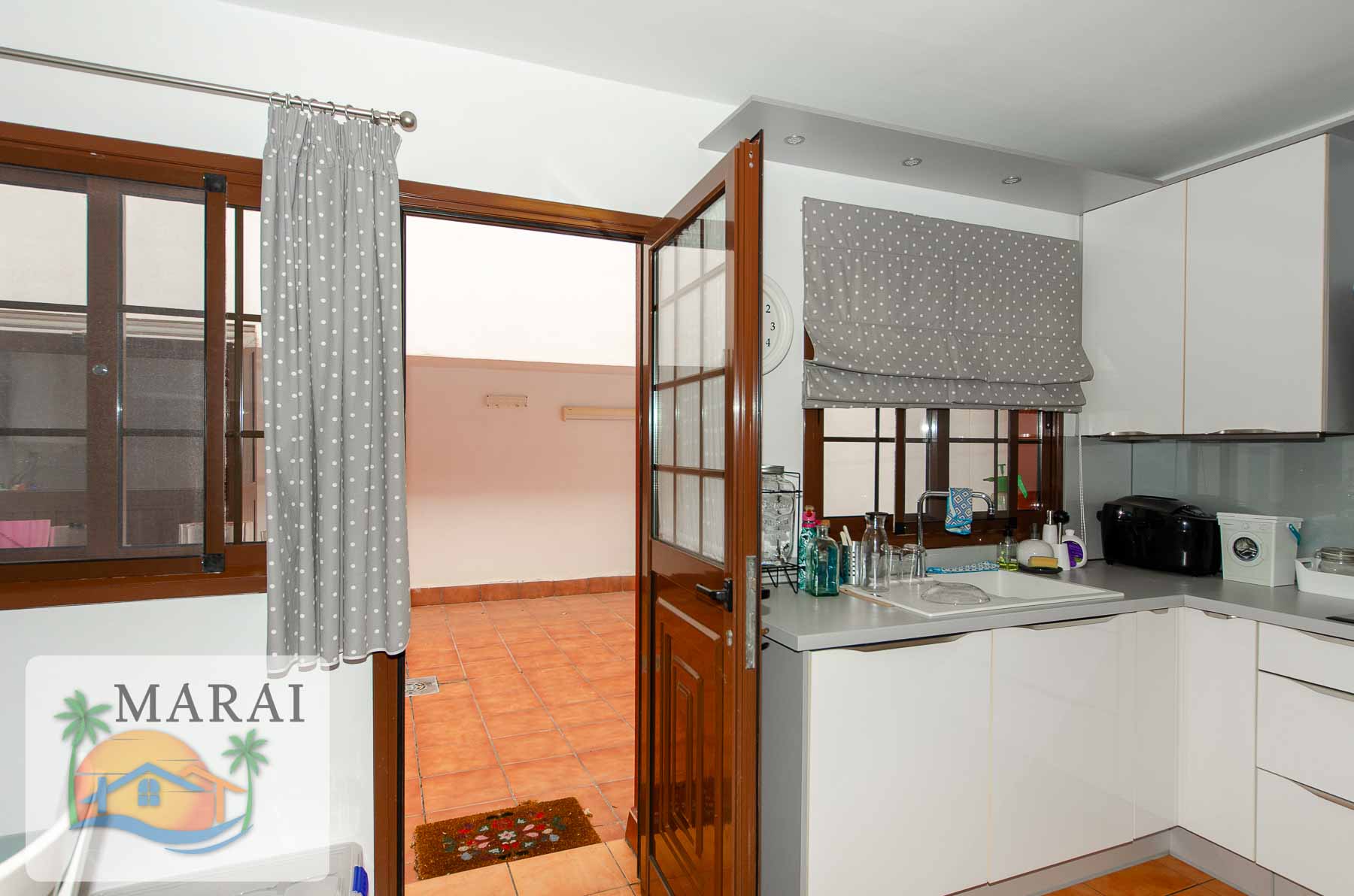 • Modern, fully equipped kitchen with quality appliances and access to another terrace of approximately 28 m² with a covered laundry area.