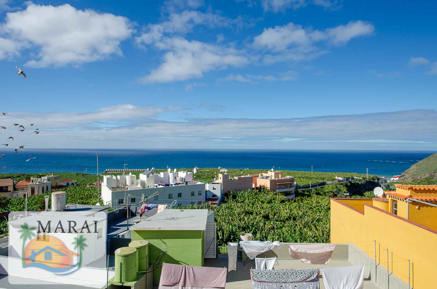 The centre of Tazacorte is 260 metres away, the large beach of Tazacorte is 2.5 km away and the town of Los Llanos de Aridane is 4 km away. The location is at an altitude of about 120m above sea level.